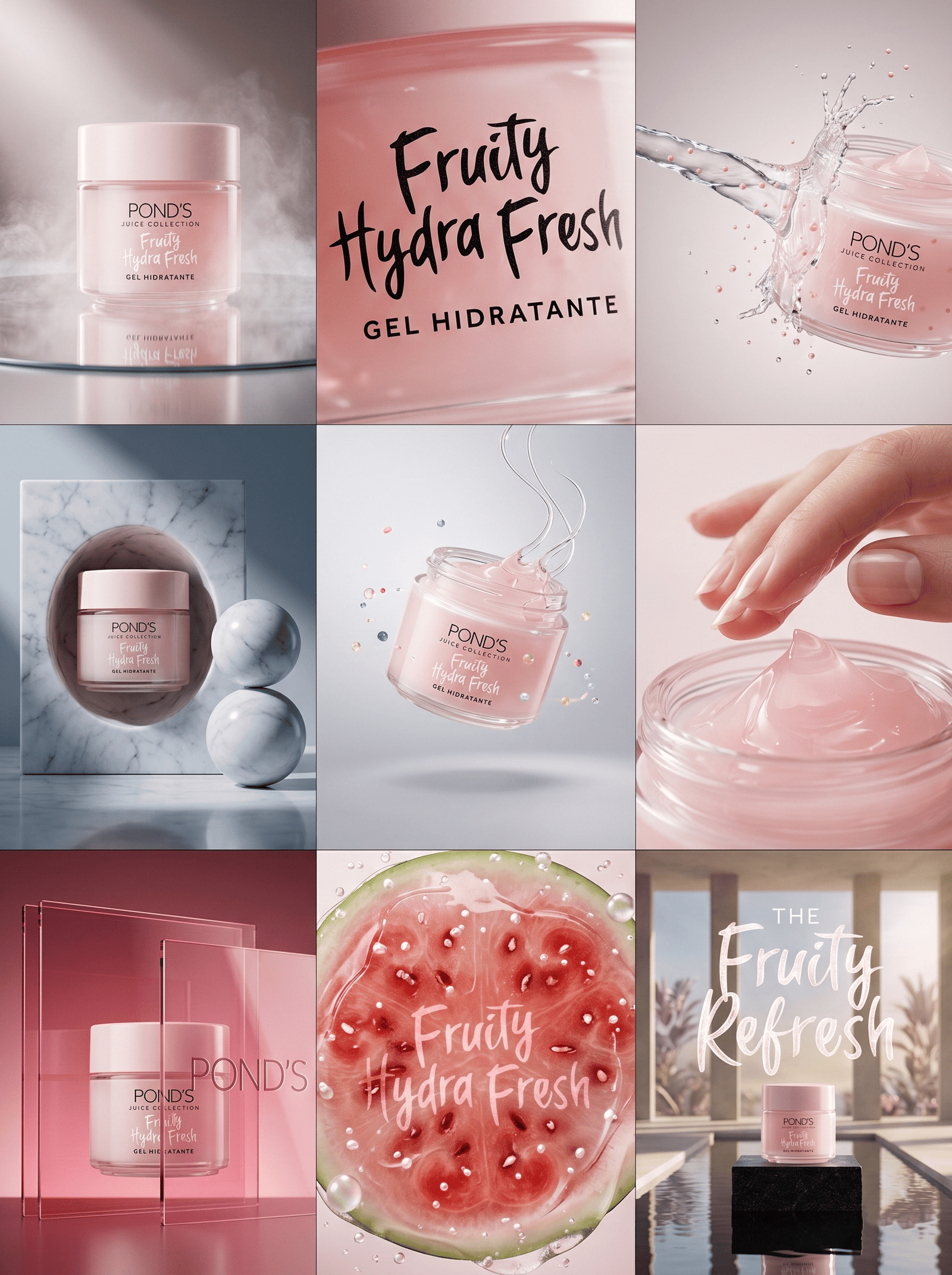 This project showcases the visual identity and branding direction for Pond’s Fruity Hydra Fresh Hydrating Gel. The concept focuses on freshness, hydration, and a youthful sensory experience, combining soft pink tones with fluid textures and fruit-inspired elements. Through a series of high-end product compositions, the design highlights the gel’s lightweight and refreshing qualities while maintaining a premium aesthetic. The visual language blends minimalism with dynamic motion, creating a modern and engaging brand presence across digital platforms.